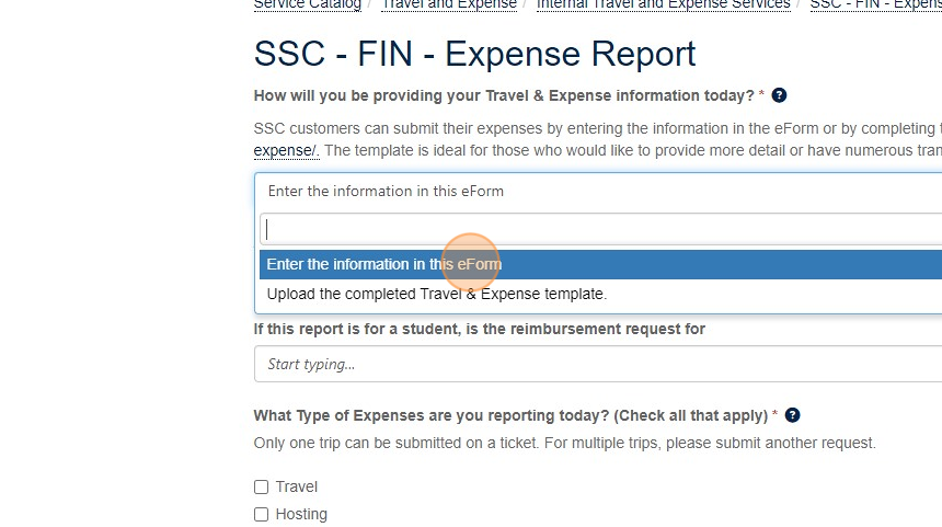 3. This field is required. You must decide how you will be submitting your expenses. Ener the information in this eForm is pre-selected.