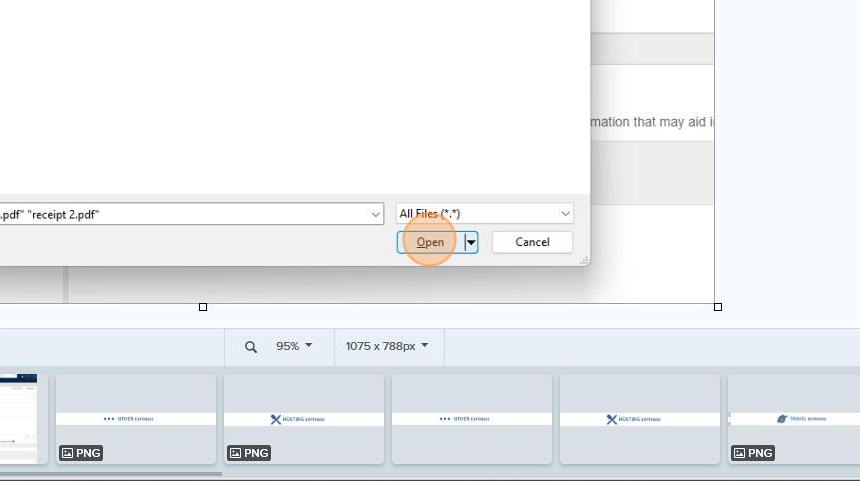 13. Click Open to attach the selected items to the eForm.