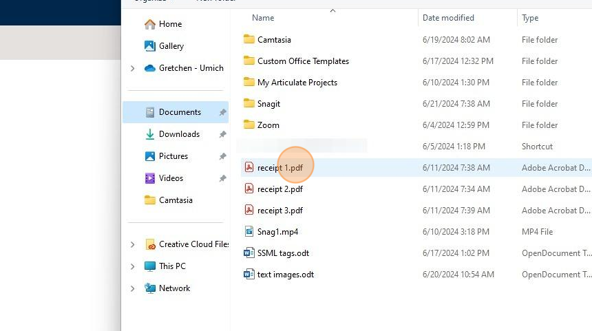 Alert: Refer to the Additional Resources section for alternative workflows to upload receipts and other required documents.