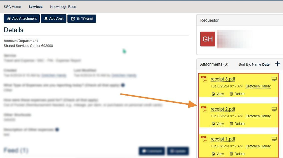 4. The request opens and the field to drag-and-drop attachments can be seen on the right under Attachments.